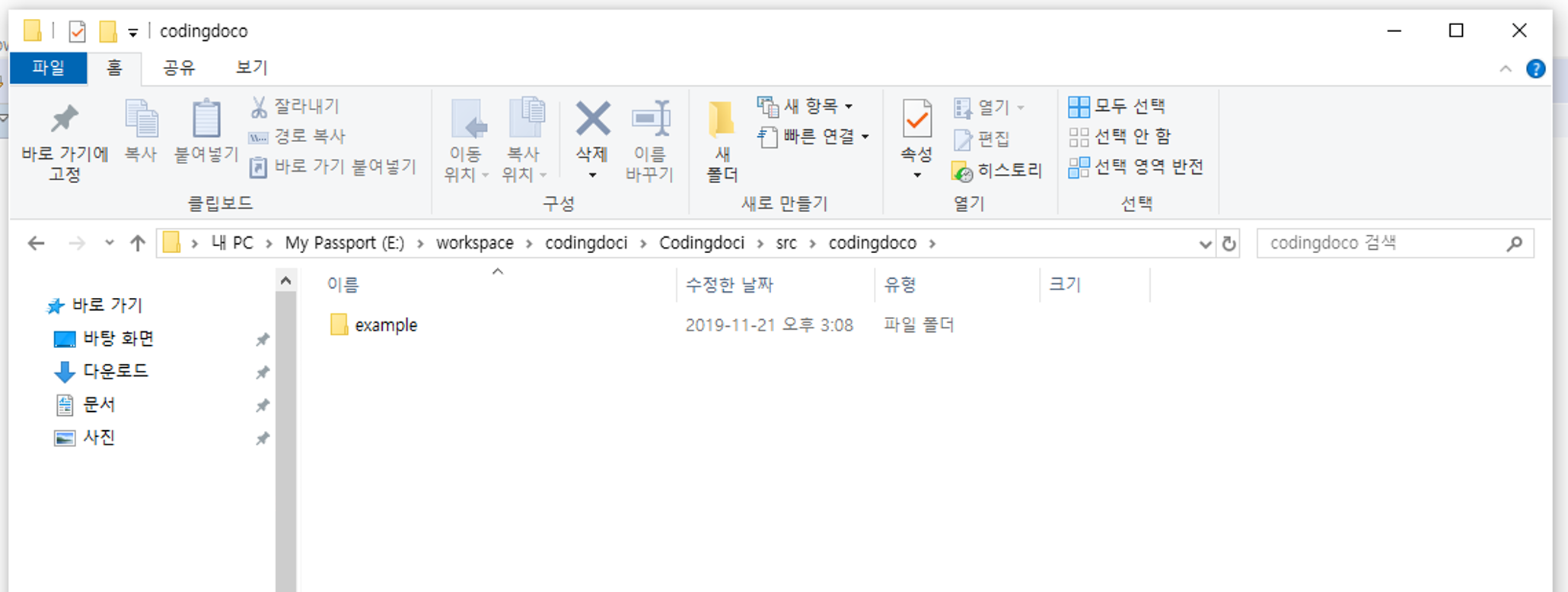 처음에 아무것도 없던 src 폴더 아래에 codingdoci라는 폴더가 생겼네요!
