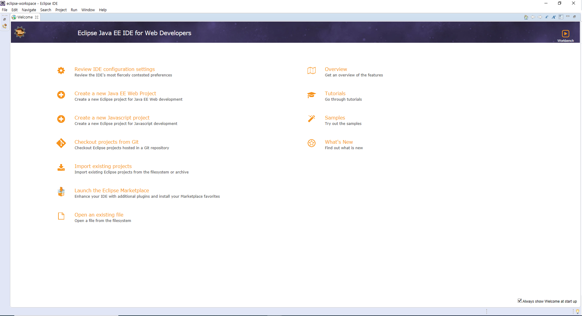 위와 같은 화면이 나오면 이클립스가 잘 설치된 것입니다.
