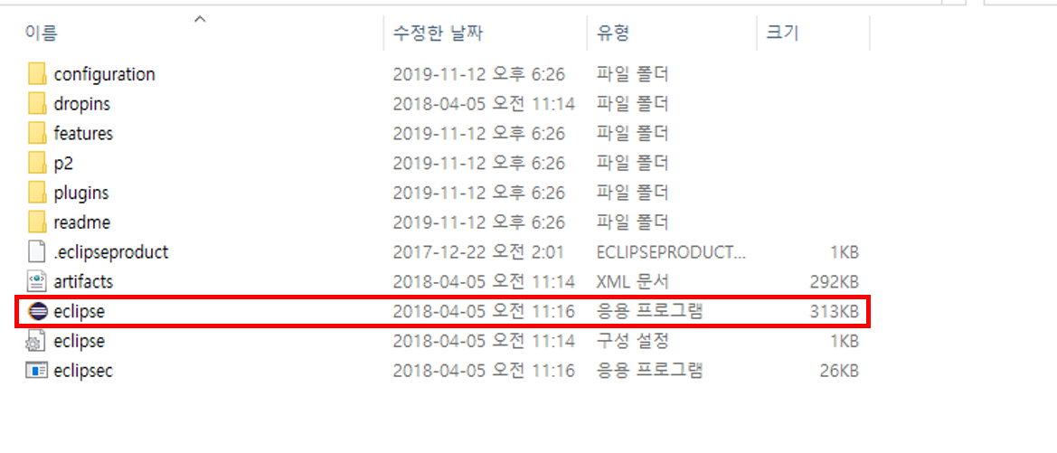 해당 zip 파일에는 이클립스를 구동하기 위해 필요한 것들이 모두 들어가 있습니다.